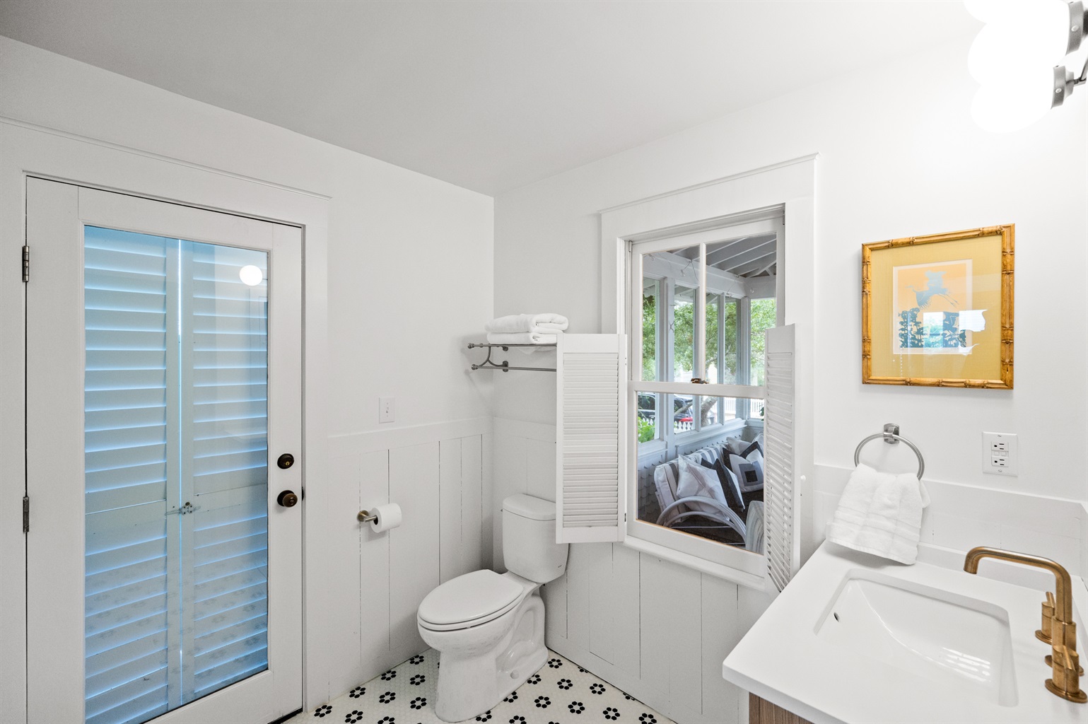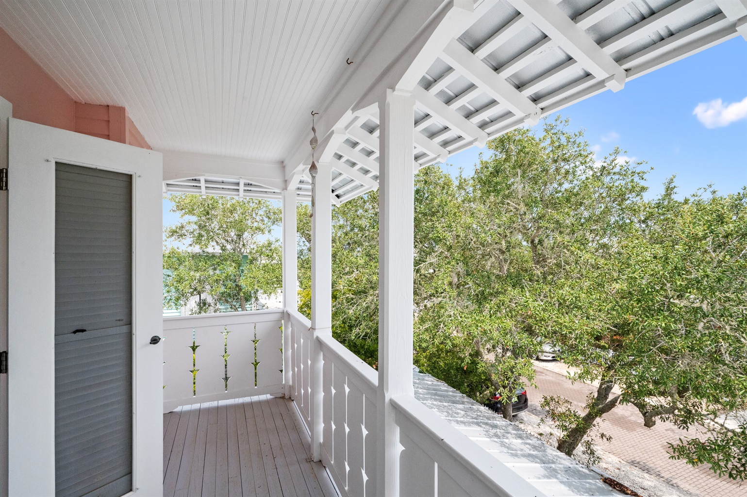 Charming screened porch with outdoor dining—perfect for morning coffee or relaxed coastal meals.